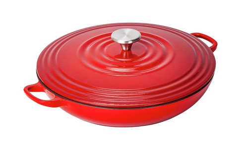 Go Cook Cast Iron Shallow Casserole Dish 3 38l Red Tesco Groceries